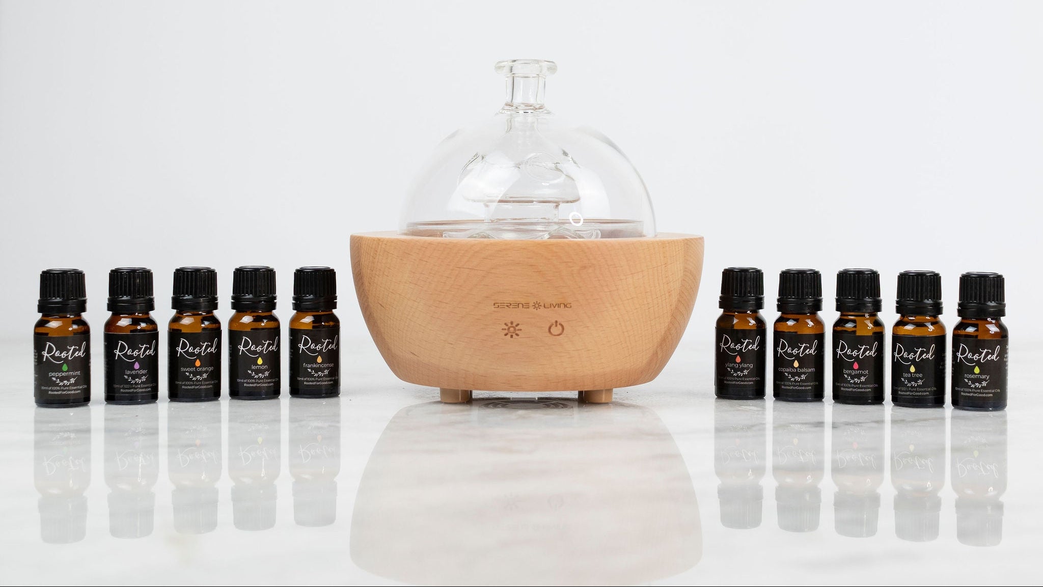 Experience the power of nature with this kit of 100% Pure Therapeutic Grade Essential Oils—perfect for aromatic or topical use. Enjoy the same high-quality oils as premium brands at a more affordable price. This kit includes nine 15ml signature Rooted Blends.